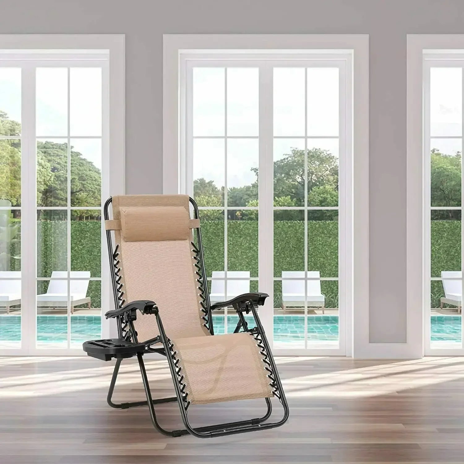 2. Wide application range: This zero gravity lounge chair perfect for outdoor, camping, patio, lawn and backyard. It's also suitable for indoor use such as living room. Portable side table take care of your drinks and phone. It can become your personal relaxing area in your home.