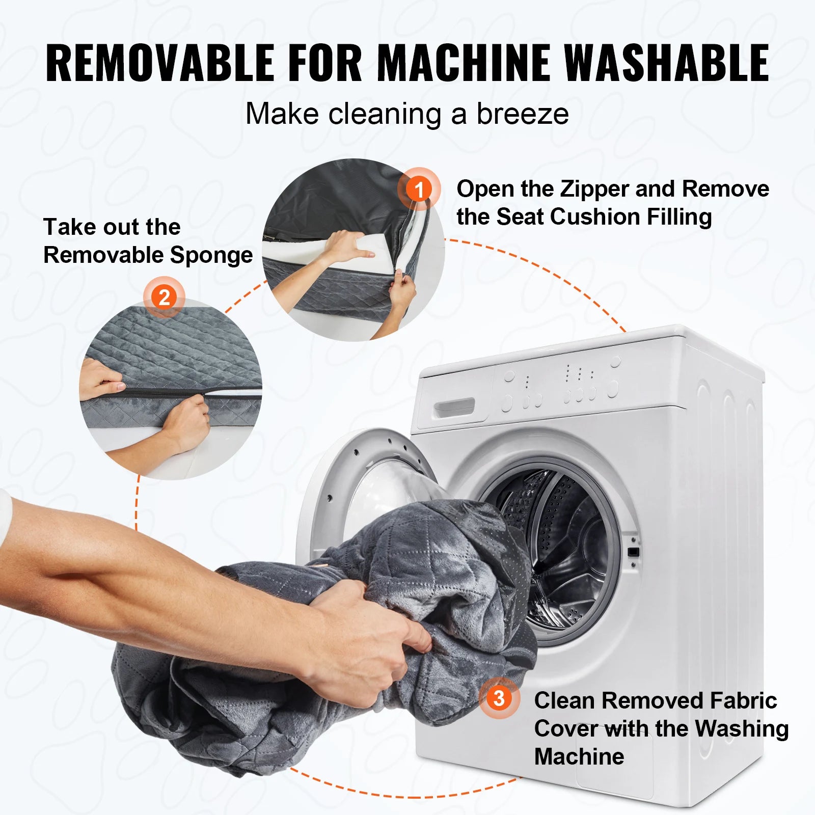 Easy to Clean: Designed for convenience, this puppy car seat has a fully removable cover and built-in sliding zipper. Take out the filling and the cover can be machine washed, making maintenance simple and hassle-free.