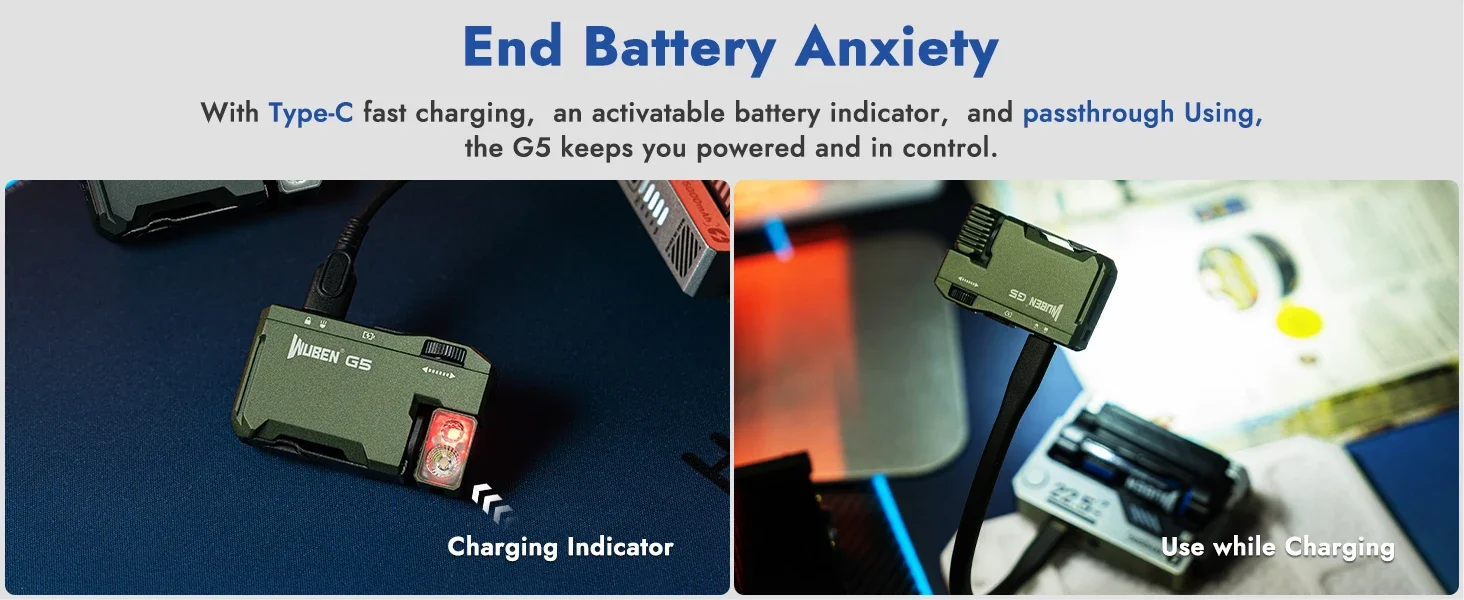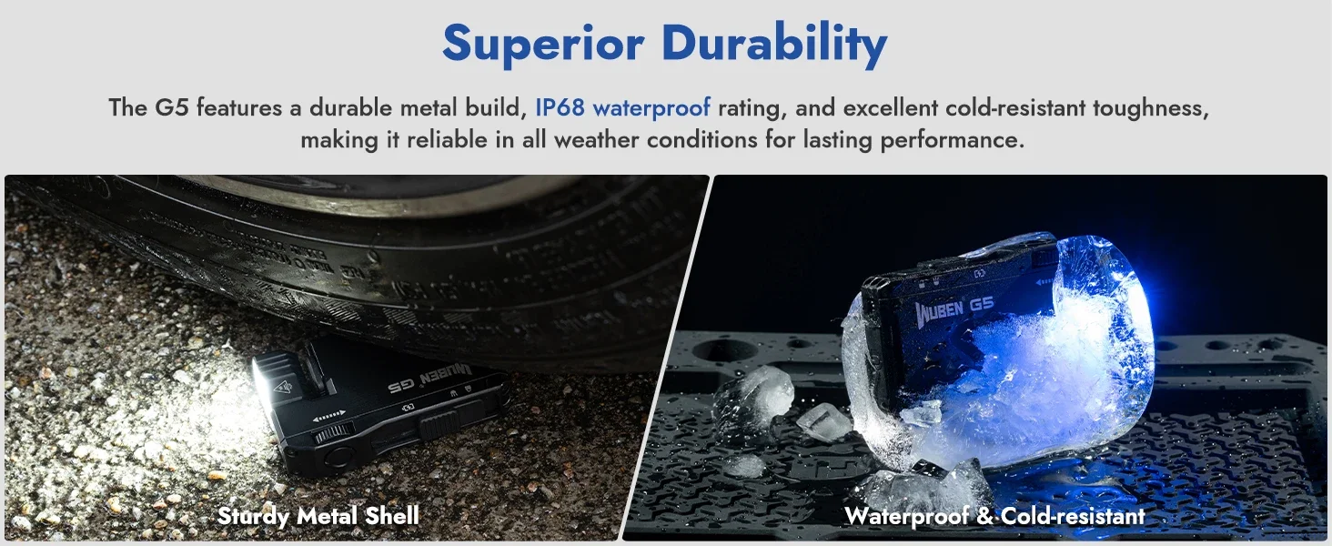 WUBEN G5 EDC 400 Lumen & RGB Dual-Light Flashlight USB-C Rechargeable Keychain hands Free for Camping, Car Repair, Home Use